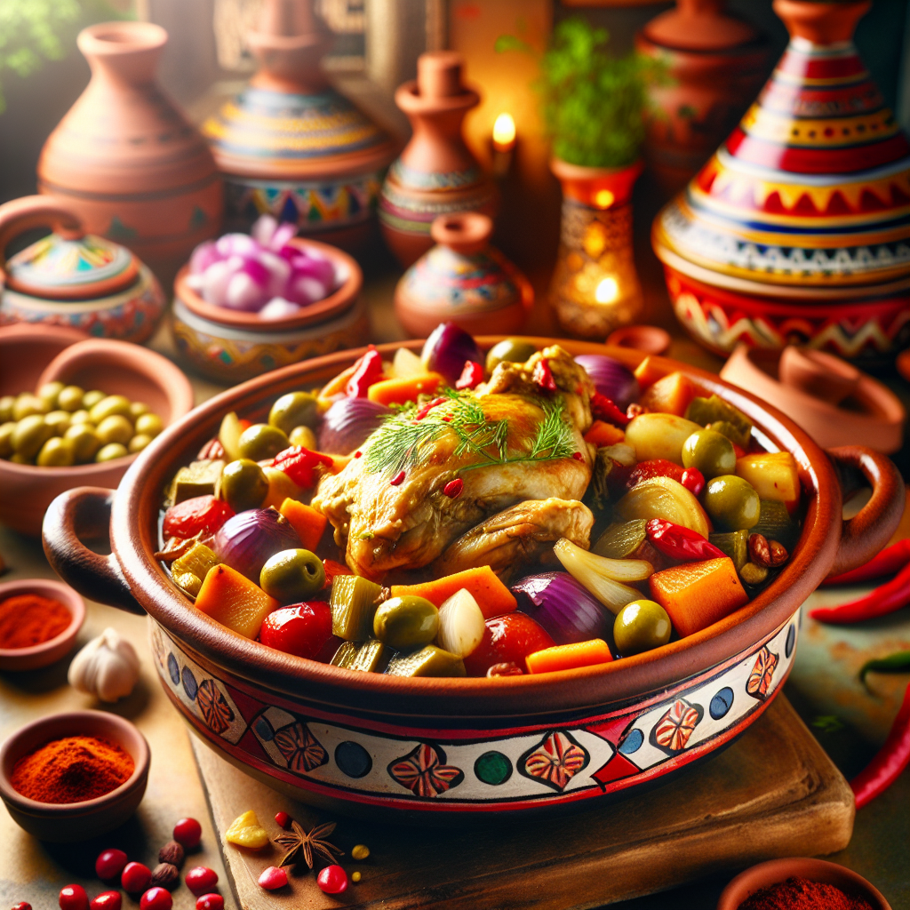 El tajine de pollo es un plato tradicional de Túnez que ha ganado popularidad en todo el mundo por su sabor exquisito y su característica presentación en el icónico recipiente de barro, también llamado tajine.